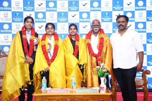 By honoring these world champions. Velammal Nexus Group reaffirms its dedication to motivating and supporting athletes in their journey toward success. The organization extends its heartfelt congratulations to Ms. M. Khazima, Ms. V. Mithra, and Ms. K. Nagajothi for their exemplary accomplishments and wishes them continued success in their future endeavors.