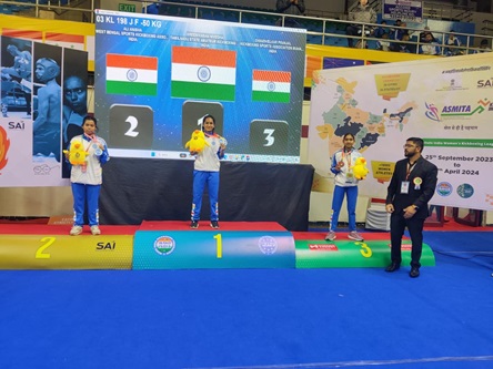 விளையாட்டுத்துறை அமைச்சர் உதயநிதி ஸ்டாலின் நடத்திய கேலோ இந்தியா போட்டியில் தங்கம் வென்ற நிவேதா தற்போது மூன்றாவது வாகோ இந்தியா ஓபன் இண்டர்நேஷனல் கிக் பாக்ஸிங் சாம்பியன்ஷிப்பில் இரண்டு தங்கப்பதக்கங்கள் வென்று பெருமை சேர்த்தார்!
