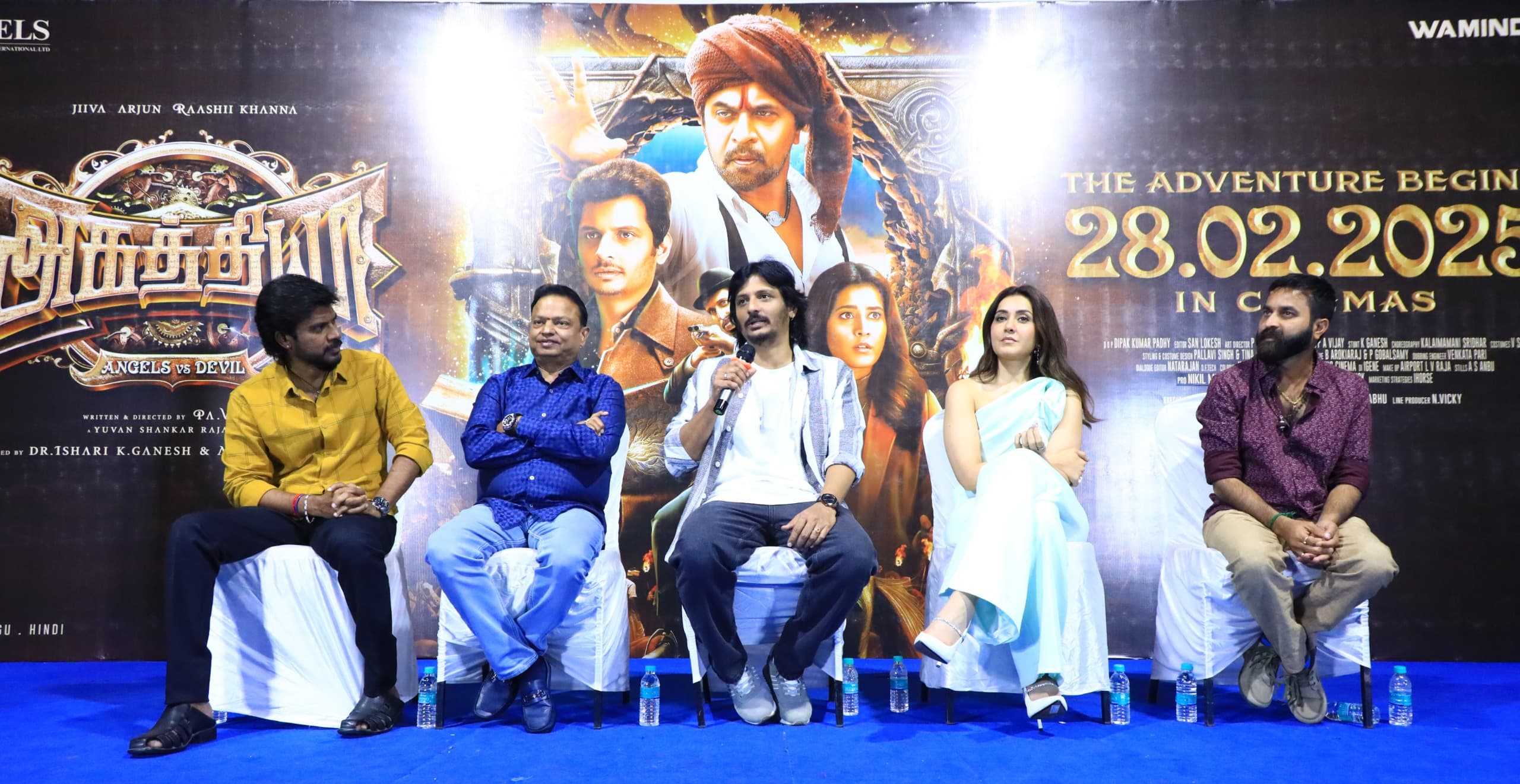 வேல்ஸ் ஃபிலிம் இன்டர்நேஷனல் சார்பில் டாக்டர் ஐசரி கே கணேஷ் மற்றும் வேம் இந்தியா சார்பில் அனீஷ் அர்ஜுன் தேவ் இணைந்து தயாரித்து, ஜீவா, அர்ஜுன், ராஷி கண்ணா நடிப்பில் பா. விஜய் இயக்கத்தில் உருவாகி, வரும் 28ம் தேதி வெளியாகும் ‘அகத்தியா’ படத்தின் பத்திரிகையாளர் சந்திப்பு சென்னையில் நடைபெற்றது.