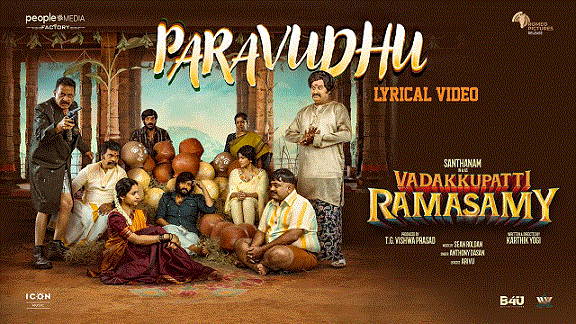 Vadakkupatti Ramasamy 2024 latest movie starring Santhanam and Megha Akash. Directed by Karthik Yogi. Music by Sean Roldan. Produced by People Media Factory.
