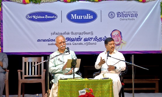 தன்னிகரற்ற கண்ணதாசனின் பாடல்களின் சிறப்புகளை “காலங்களில் அவன் வசந்தம்” – நூறாவது நிகழ்ச்சியில் முனைவர் கு.ஞானசம்பந்தம், இசைக்கவி ரமணன் அவர்களுடன் பங்கேற்று பகிர்ந்து கொள்கிறார்.