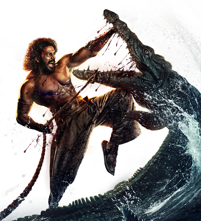 இந்த ஃபர்ஸ்ட் லுக் போஸ்டரில் விராட் கர்ணா அற்புதமான மற்றும் முரட்டுத்தனமான தோற்றத்தில் தோன்றுகிறார். சுருள் முடி- தாடி- நேர்த்தியான உடல் அமைப்பு- சட்டை இல்லாத தோற்றம் – ரத்தக் களரி என பல அம்சங்கள் இடம் பிடித்திருக்கும் இந்த போஸ்டரில் அவருடைய சிக்ஸ் பேக் உடல் அமைப்பும் இடம் பிடித்திருக்கிறது. அவரின் இந்த துணிச்சலான அவதாரத்தில், கடலில் அச்சுறுத்தும் முதலையுடன் அச்சமின்றி போராடுவதையும் சித்தரிக்கிறது. அதே தருணத்தில் கைகள் மற்றும் கயிறு மூலம் அந்த உயிரினத்தின் வாயைத் திறந்து வைத்திருக்கும் ருத்ராவின் துணிச்சல் மற்றும் வலிமையும் தெளிவாக காட்சிப்படுத்தப்பட்டிருக்கிறது